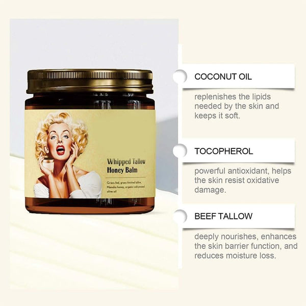 Transform your daily routine with our rich balm. Packed with grass-fed butter and honey, it deeply nourishes and hydrates, leaving your skin smooth and radiant. Say goodbye to dryness and hello to comfort.