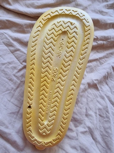 The shipment arrived to me quickly (over a week). The flip flops are very nice. The material is good, delicate and light. They look on the leg nice, funny. I recommend the seller